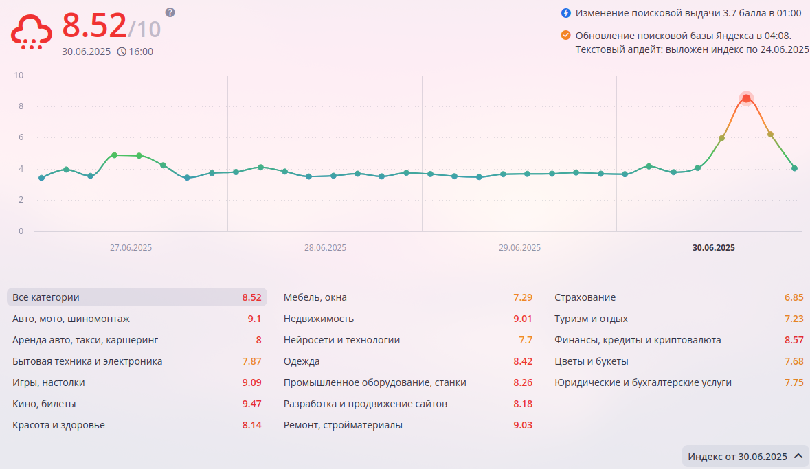 Период с конца июня до начала июля этого года уже можно называть «технической весной» российского поискового маркетинга. Кажется, что привычные правила игры в Яндексе снова были переписаны — но это иллюзия. Давайте разберём: чем запомнятся эти "шторма", почему винить одну накрутку или одну ошибку бесполезно, и какие гипотезы сейчас реально обсуждают инженеры и SEO-специалисты.