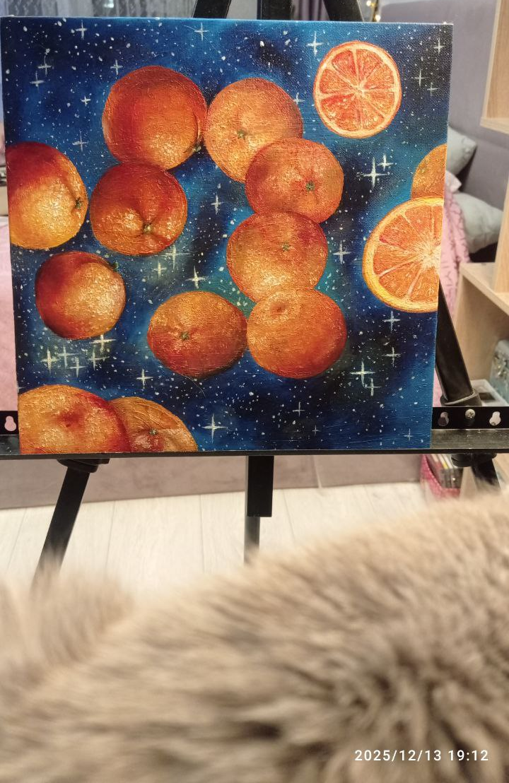 4 Andromedachka Апельсины в космосе 6 часов назад Дописала картину. Кот явно помогал :З [моё] Творчество Искусство Картина Живопись Авторская живопись Картина маслом Холст Длиннопост Ещё 0