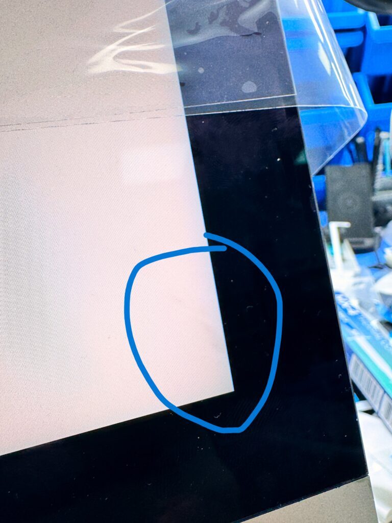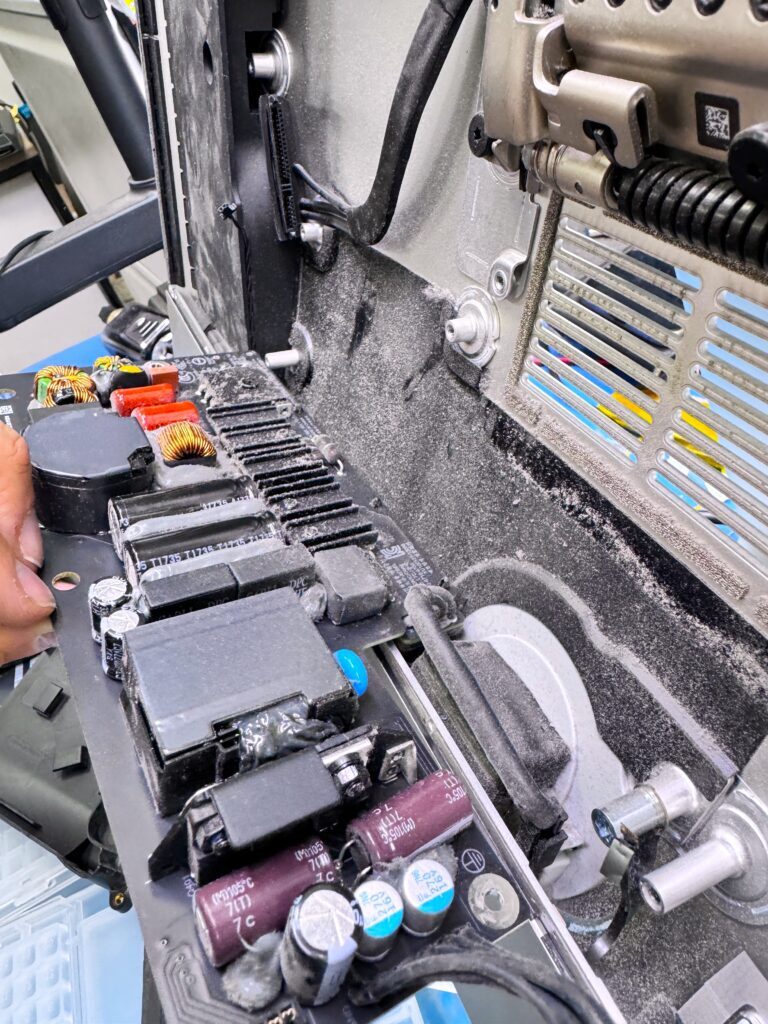 Для тех, кто не помнит из предыдущего поста: если моноблок не чистить, то он набивается пылью, которая благополучно засасывается на подсветку по углам дисплея, оставляя серые пятна на белом фоне.