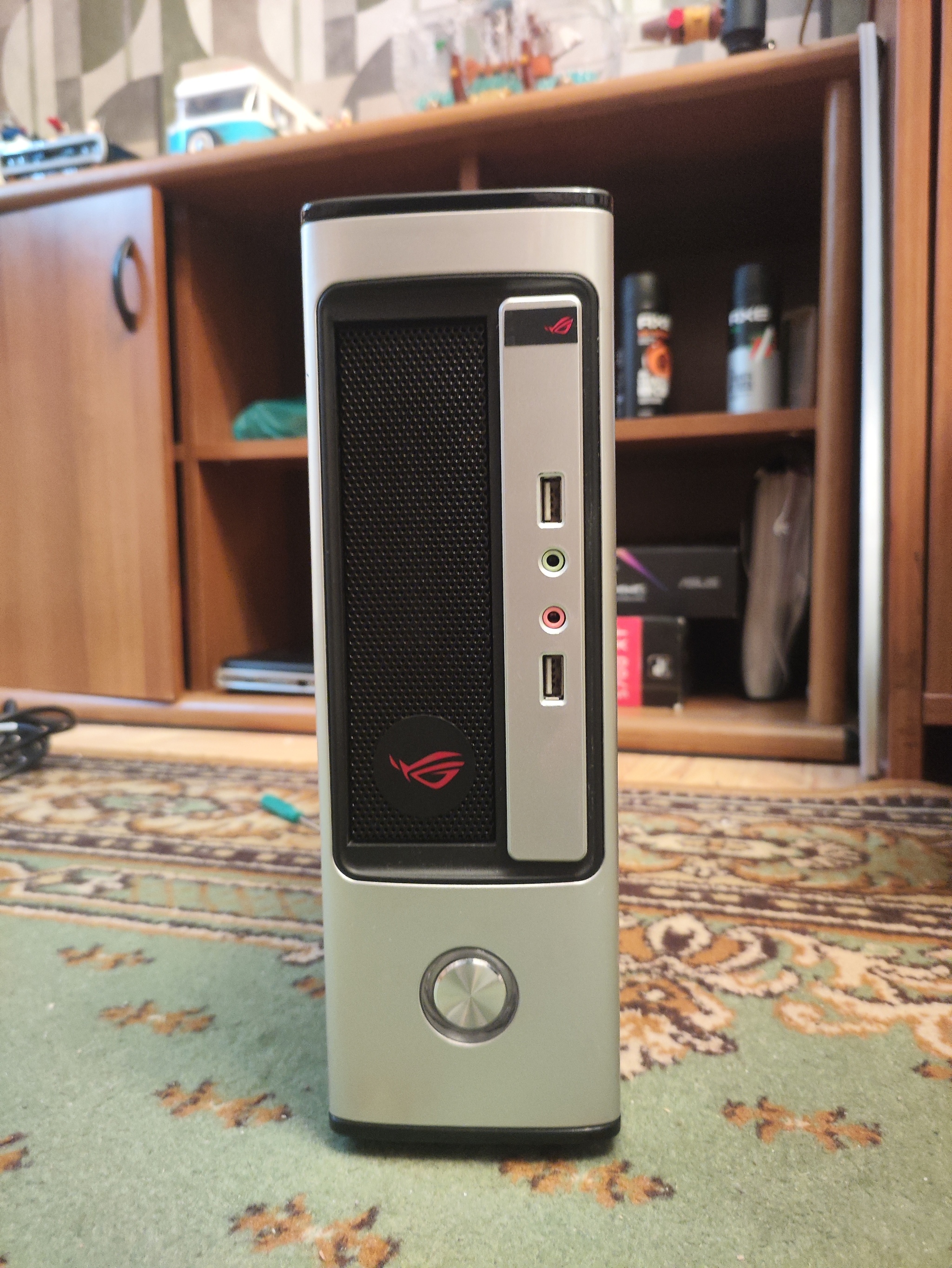 Лет 14 назад банкротилась фирма, где родственник числился генеральным директором. Притащил он мне оттуда в подарок 7 или 8 разных офисных ПК, одним из них был малютка в корпусе miniITX