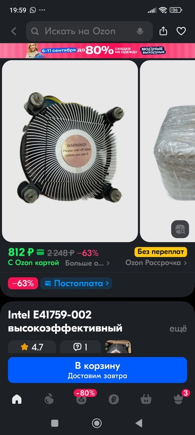 Кулер взял стандартный интел, но судя по всему тоже "рефреш". Цена ему была 900₽. Главное, что у него медный пятак и он идеален по размеру для этого корпуса в этом ценовом диапазоне. В общем не стал заморачиваться что-то другое искать.