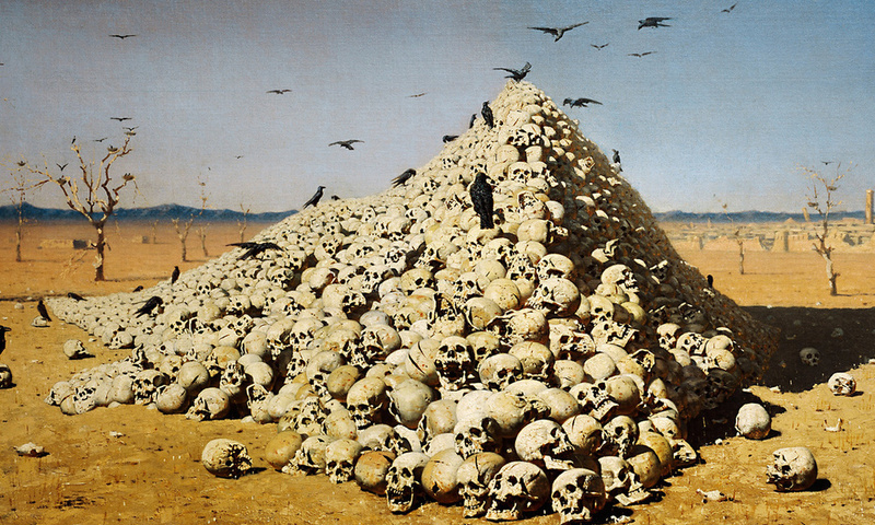 Сам Верещагин так определял жанр своей картины: “если не считать ворон, это натюрморт, в переводе с французского мертвая природа”…