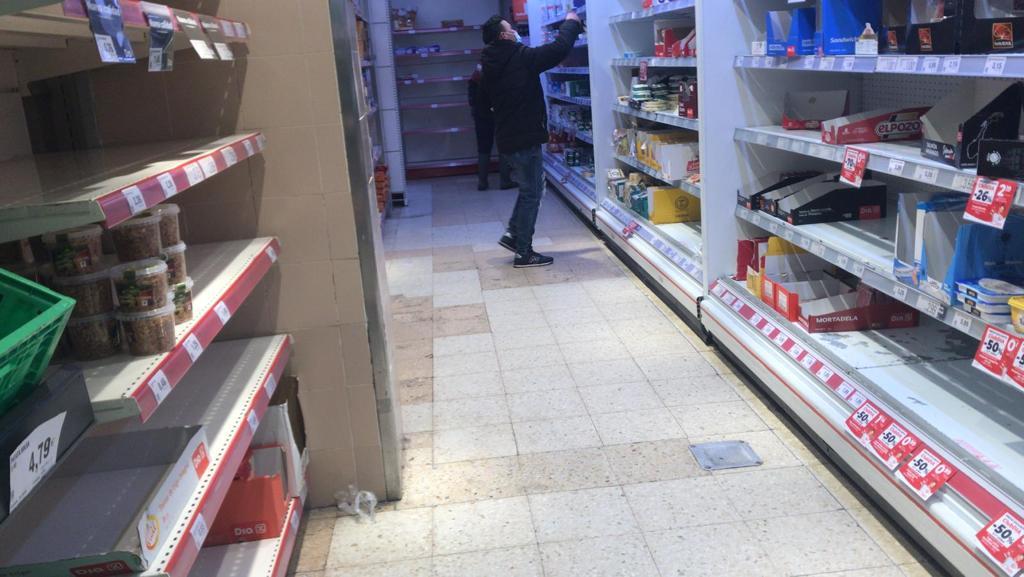 Чистить снег испанцы не очень умеют и не знают как, что логично. Но самое главное, что испанцы не умеют водить автомобили по снегу на летней резине, поэтому во многие магазины продукты просто не могут приехать, отсюда везде пустые полки.