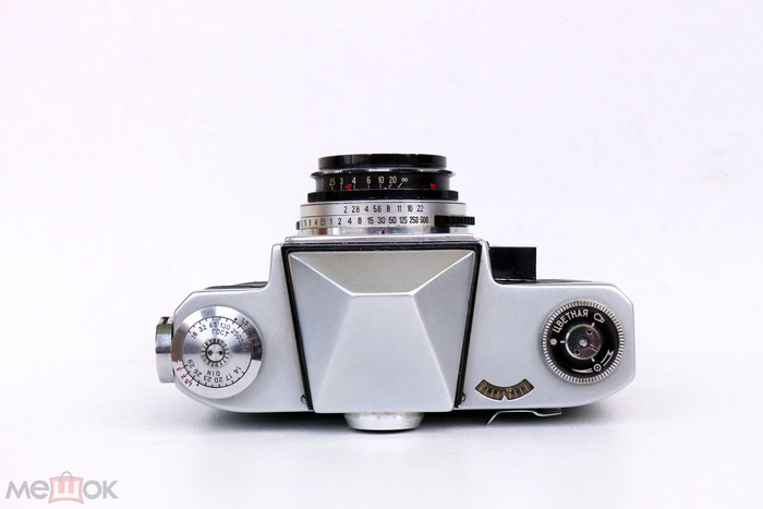 Все они так или иначе группируются вокруг объектива или на выступе корпуса, образованном шахтой зеркала. Сверху над объективом виден светоприемник экспонометра.