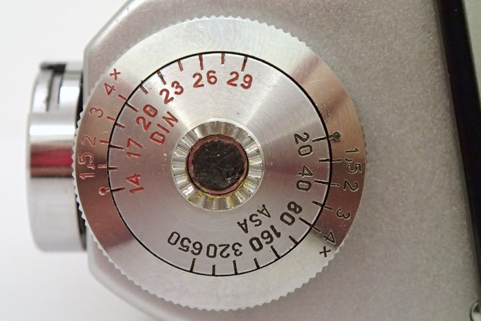 На головке 2 шкалы — ASA (ГОСТ) и DIN. Если объектив используется со светофильтром, то значение чувствительности нужно совмещать не с круглым индексом, а с цифрой, соответствующей плотности фильтра. Так в систему расчета экспозиции вводится поправка на плотность фильтра.