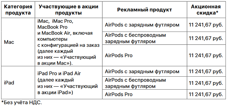 По факту скидка на 11 241 рублей при покупке И акционого товара И айподса в рамках одного чека (при условии наличия товара и если конкретный магазин участвует в акции). Типа получается либо дарят эйрподс, либо дают скидку при покупке эйрподс про.