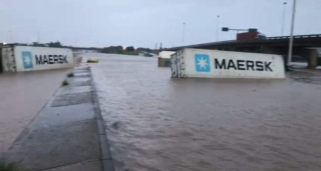 Дождь прекратился, вода ушла в океан, контейнеры остались там, куда их прибило.
