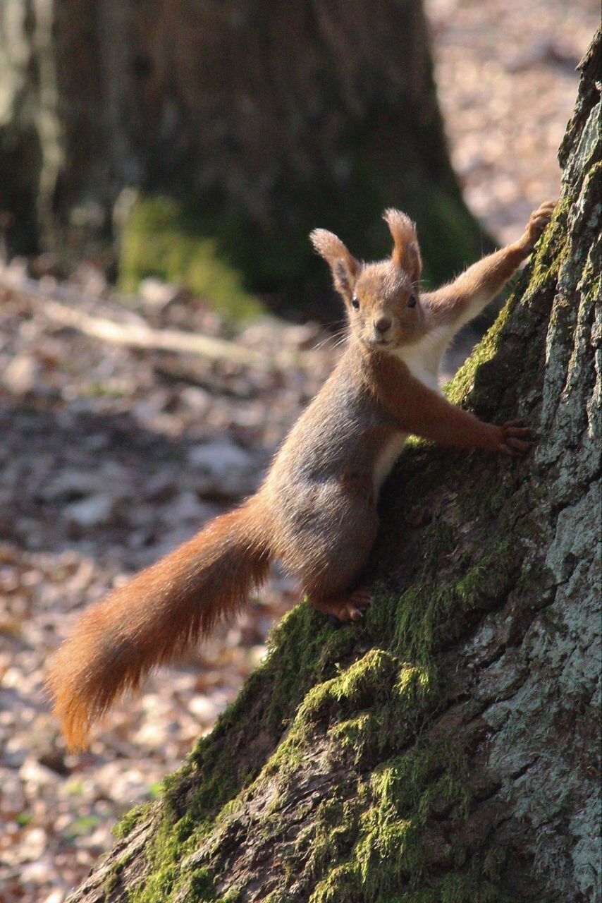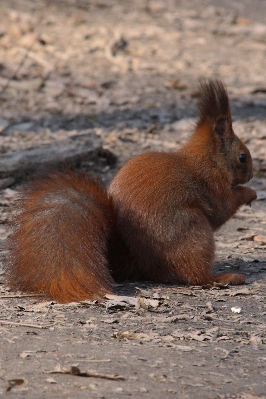 Белка заинтересована -- за кадром я показываю грецкий орех.