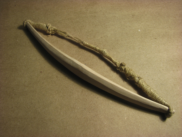 Еще один крайне важный элемент, на котором стоит остановиться – тетива. Казалось бы, чего проще. Петельки завязал, накинул, готово. Но при натяжении, все это будет непременно сползать, съезжать и тп. Методы крепления на картинках и схемах не всегда подходят, не работают, либо на них просто не заостряют внимания, и их нельзя использовать в принципе. В общем, готовое взять было нельзя. Можно то есть, но все опять же требовало испытания, проверки и осознания. Я вырезал небольшие выемки на концах, как у всех луков, но опять же, при сильном натяжении узел на конце растягивался и все опять начинало сползать и съезжать. После нескольких попыток пришлось гуглить узлы. Выбрал обычную петлю, как на виселицах, сюда она тоже вполне подошла. Начал я с одной нити веревки. Она, конечно же, порвалась. Потом перешел сразу на три сплетенные нити. (Стоит сказать, что нитью я называю свою веревку. По факту она изначально состоит из трех пеньковых нитей.) А вот это уже заработало. Три нити толщиной и две петли на концах – вполне рабочий вариант. С ним я и испытывал все.
