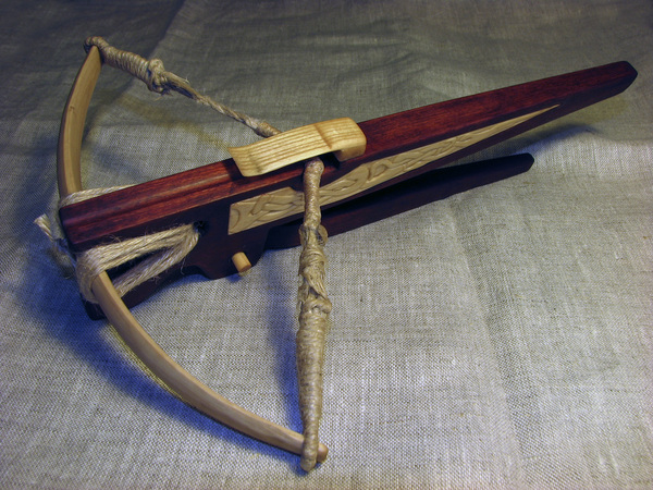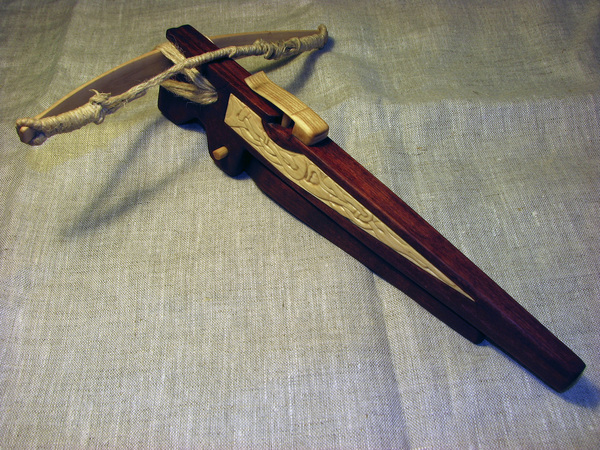 Началось все, конечно, с идеи. Она давно росла и закреплялась в голове, потихоньку собирались материалы и мысли. Живу я в квартире, и обрабатывать большие объемы древесины не то, чтобы очень удобно. Да и перевести кучу материала, допустив пару дурацких ошибок, не хотелось. К тому же делаю такую штуку в первый раз и готовой технологии нет, поэтому я решил сделать небольшой по размерам арбалет, функциональную модель что ли. В общем все то же самое, только не 80 сантиметров длиной с огромными плечами, а 25 сантиметров длины ложа и 20 дуги. Делать сразу же решил из дерева, про работу с металлом я знаю только теоретически, да и инструментов минимум, тем более, что занимаюсь резьбой и всегда работаю с деревом.