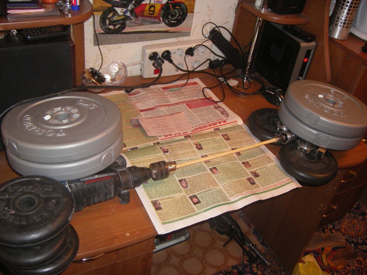 Болты (арбалетные стрелы) делал сам из брусков, на которых сначала рубанком срезал углы, а потом на подобии токарного станка из дрели и пластиковой трубки, придавленных блинами от гантелей стачивал шестигранные заготовки шкуркой до круглых. Но такие болты летали не очень точно, да и очень короткая прицельная линия давала о себе знать. Новый арбалет был принципиально иной, хотя во многом был похож на первый.