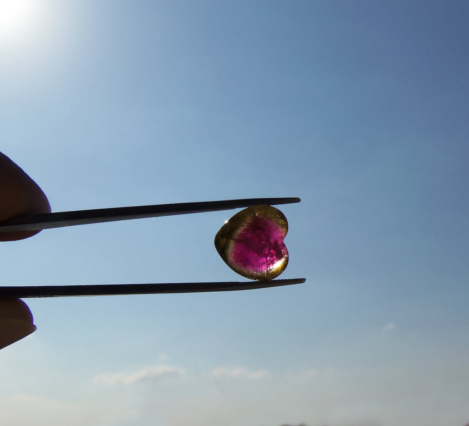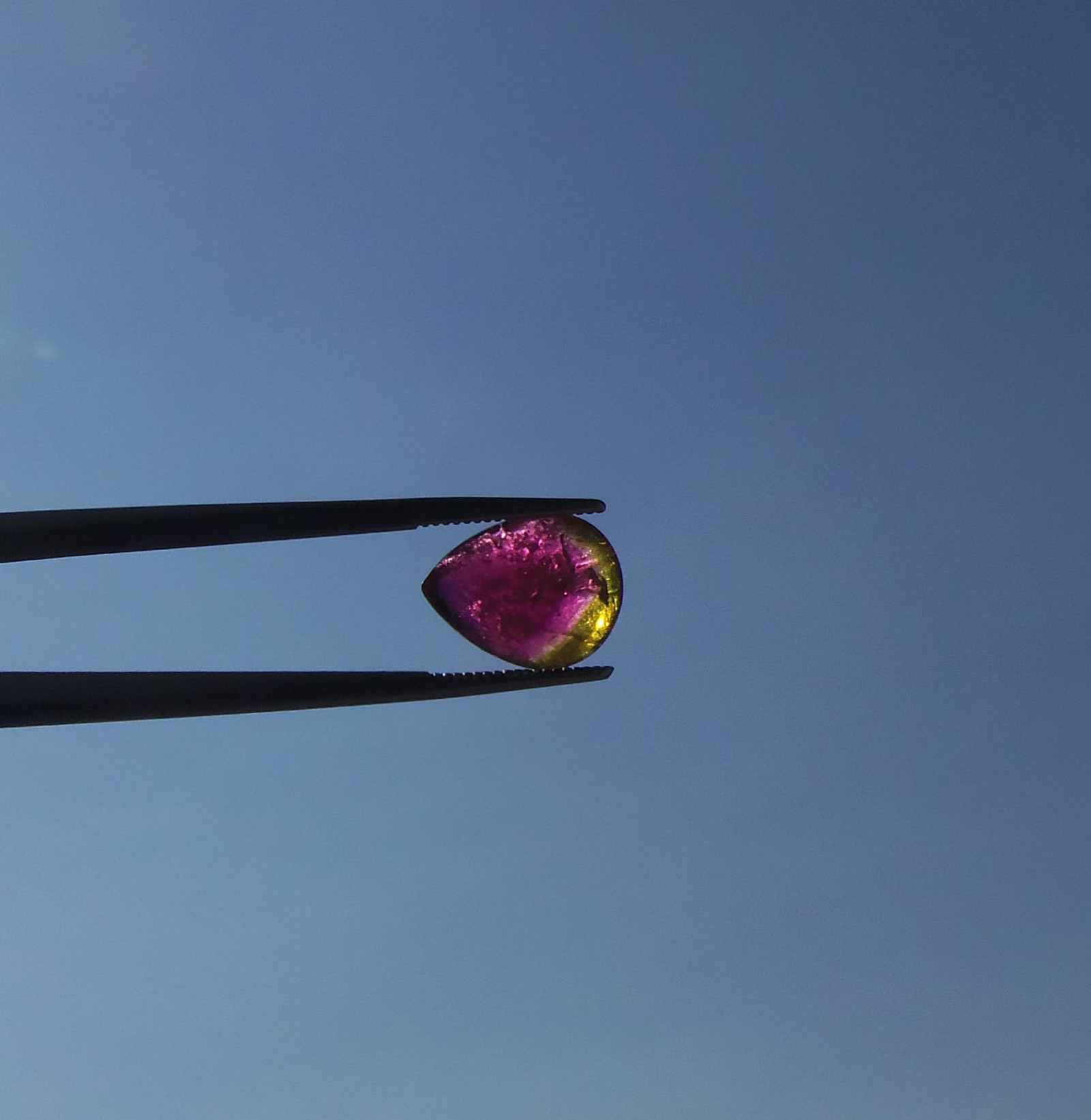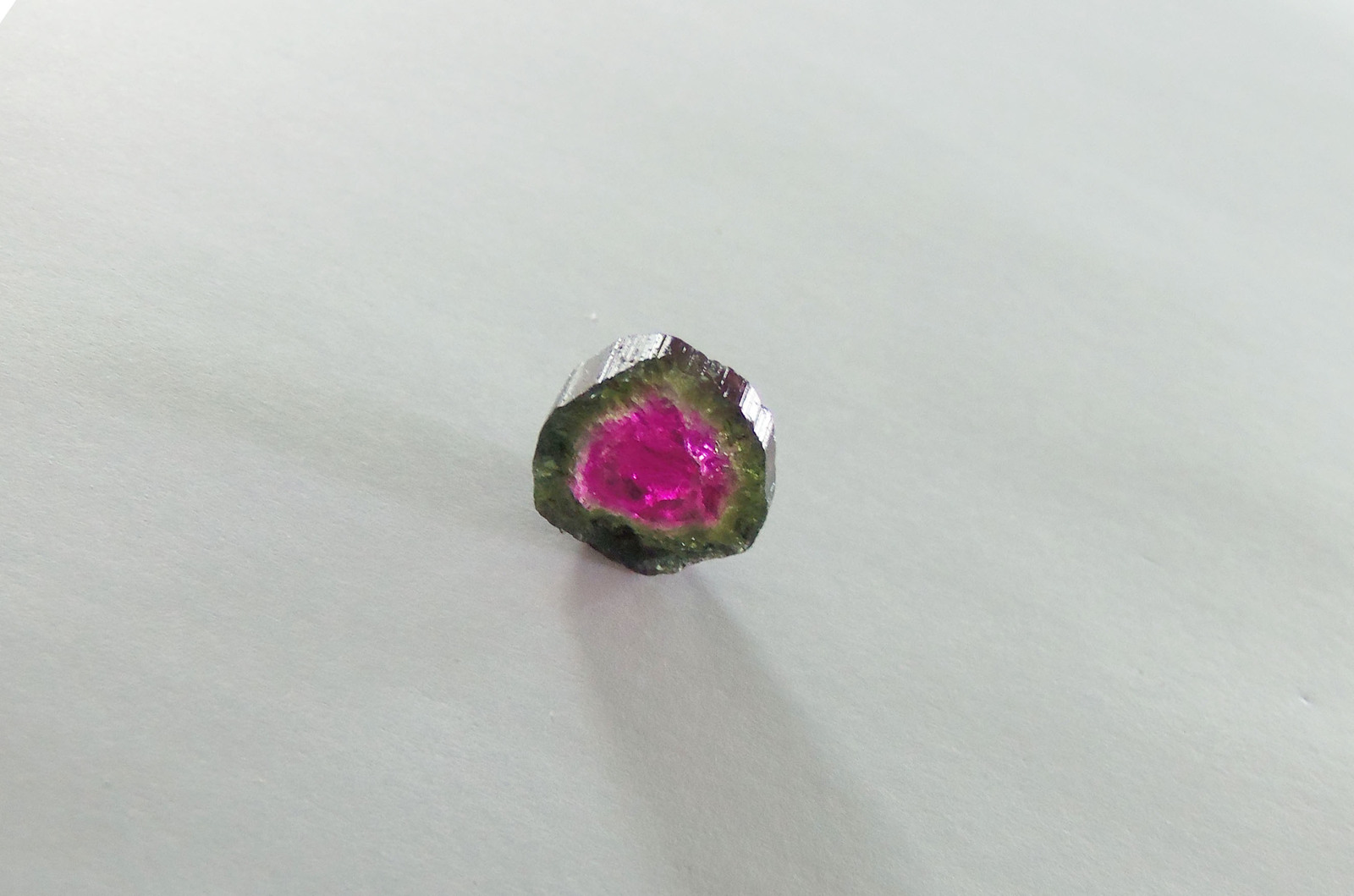 Относительно редкий и необычный камушек: арбузный турмалин. Встречается в Пакистане, Бразилии, и еще ряде стран, также в России есть парочка мест где он добывается.