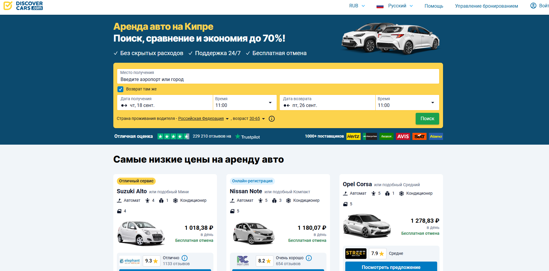 ▶️ Discovercars - надежный партнер в поиске авто на прокат на Кипре без кредитной карты