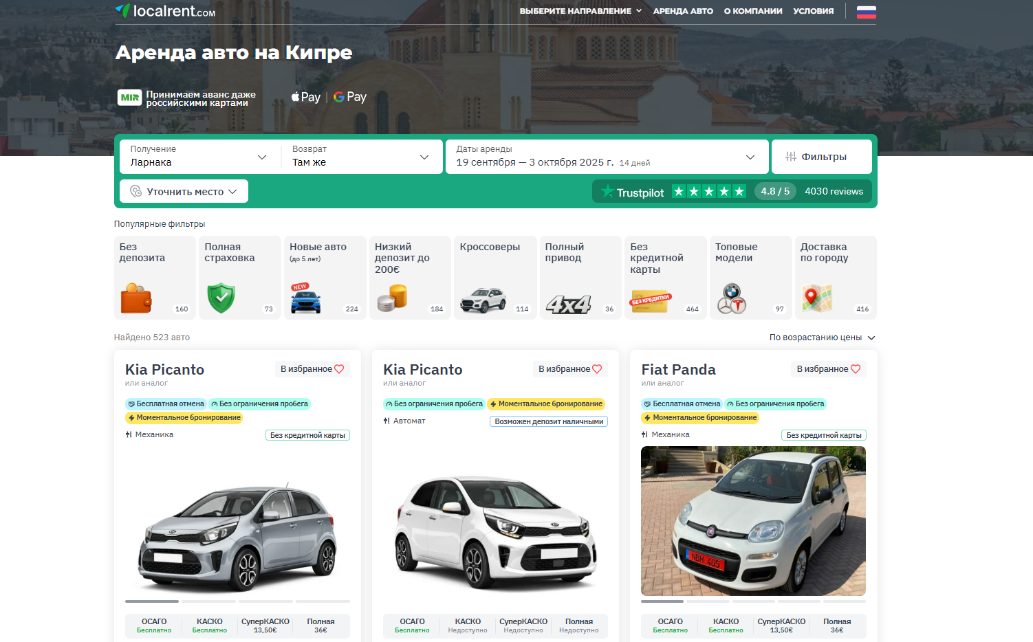 ▶️ Localrent — забронируйте конкретную модель без залога с удобной выдачей острове Кипр быстро и прозрачно без карты.