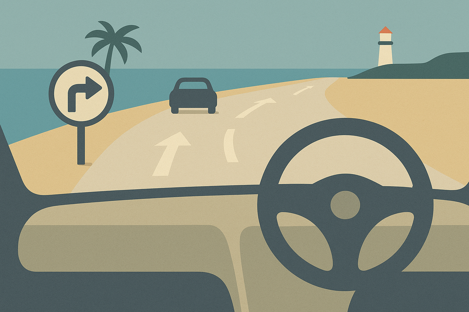 Начну с главного и самого непривычного: Кипр — левосторонний. Руль справа, круговые — по часовой стрелке, правый ряд — для обгона. Первые часы мозгу нужно «перекалиброваться»: я, например, всегда клею на панель стикер «держись левее» и прошу пассажира повторять как мантру. На кольцах уступаем тем, кто уже в круге, а при повороте направо помним, что нужно пересекать встречку — здесь чаще всего теряются те, кто «на автомате».