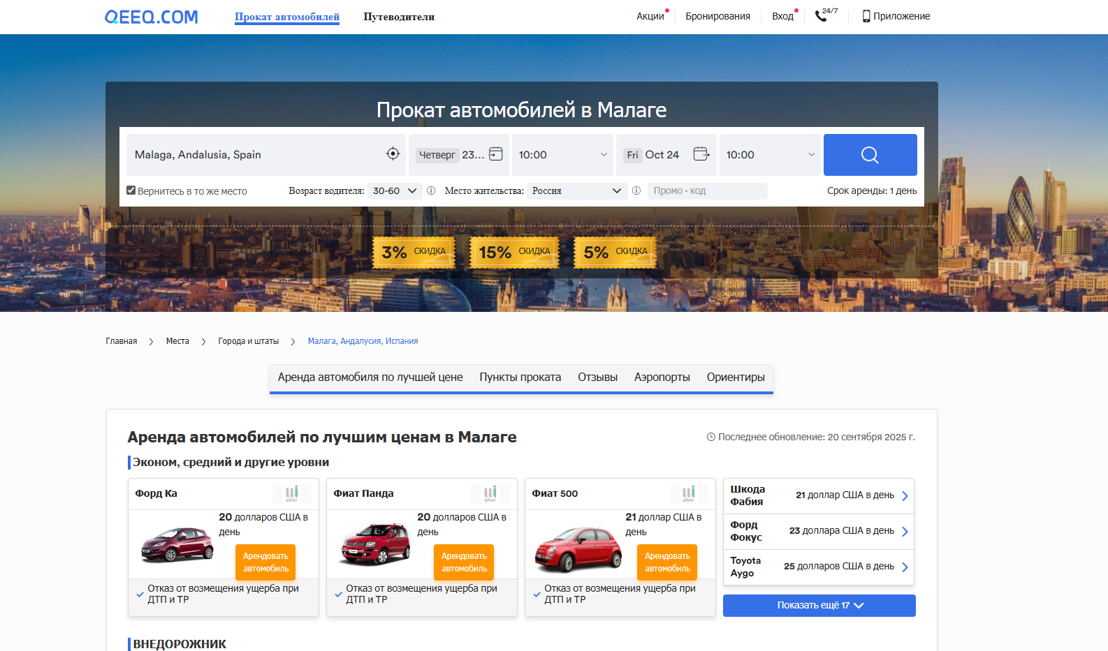 Аренда машины в Малаге - ТОП лучших сервисов проката авто в 2025