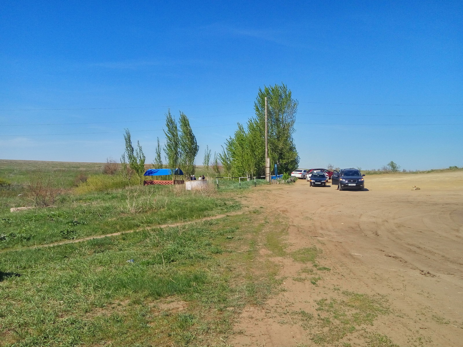 Под синим навесом - родник. Около 15 км от города. Это Актюбинск (Тугам елим).