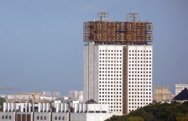 Двухчастный высотный объём Президиума возвышается над Москвой-рекой, привлекая взгляд своим ярким ажурным завершением, давшим зданию хорошо известное прозвище «золотые мозги». Присущая всему комплексу торжественность и декоративность, накопившаяся в течение двух десятилетий проектирования, по-постмодернистски отсылает к ар-деко, а сюжетное раскрытие образа за счёт бесчисленного количества ракурсов заставляет исследовать здание, уподобляя его некоему красочному лабиринту или храмовому комплексу. Собственно говоря, именно как Храм советской науки должно было восприниматься это сооружение, поражая посетителей своей помпезностью и стилистической проработкой.
