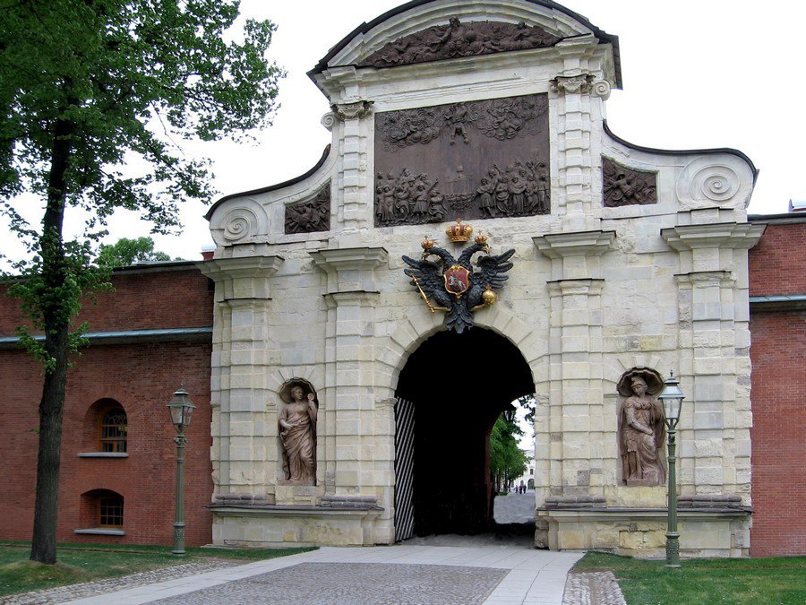 Петровские ворота, Галерная гавань, здание Двенадцати коллегий и множество других, не дошедших до наших дней, сооружений (2-ой Зимний дворец, Гостиный двор и прочие).