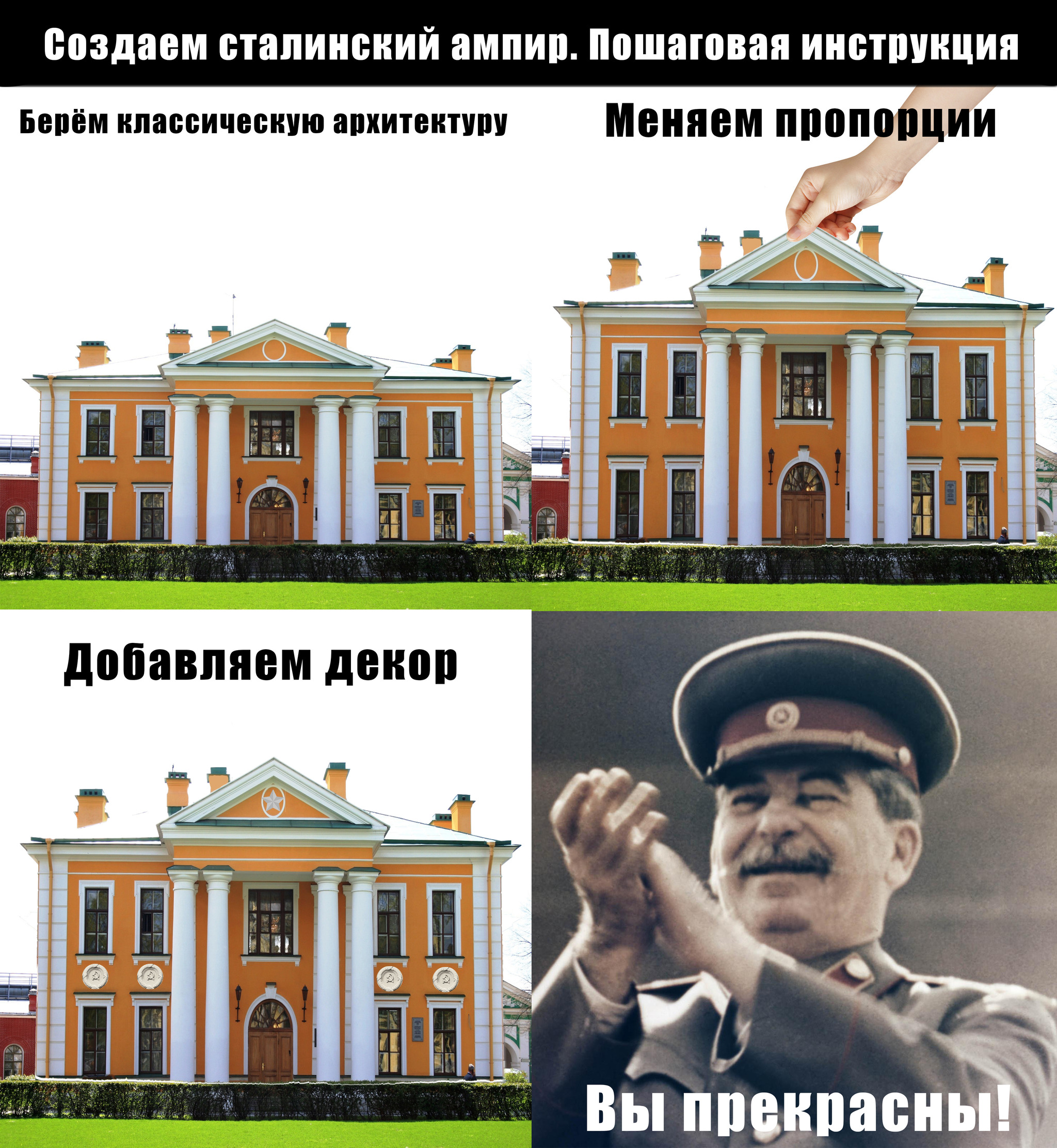 Полагаю, что углубившись в историю, архитекторы вспомнили, что подобный эпизод уже был в стране чуть более 100 лет назад и сильно изобретать не придется. Так появился Сталинский ампир.