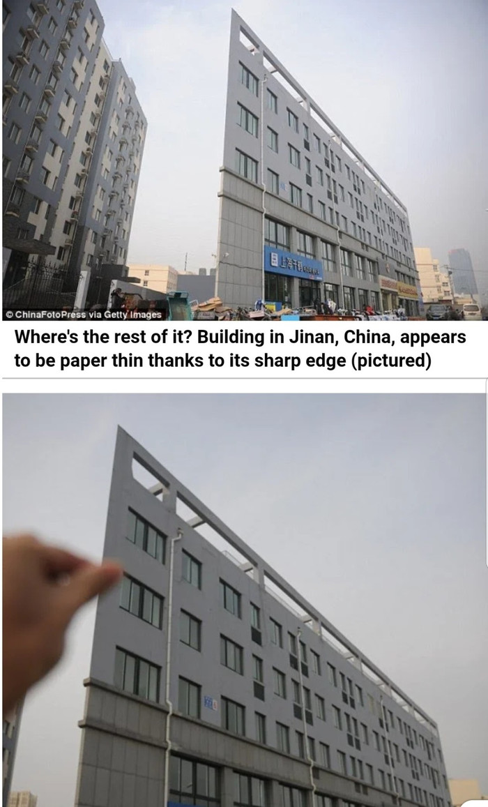 Данный жилой дом расположен в Шанхае на улице Ningbo 400 и долгое время являлся самым плоским сооружением в Китае, пока какой-то другой архитектор не решил воссоздать такой же «шедевр» в другом китайском городе — Цзинань.