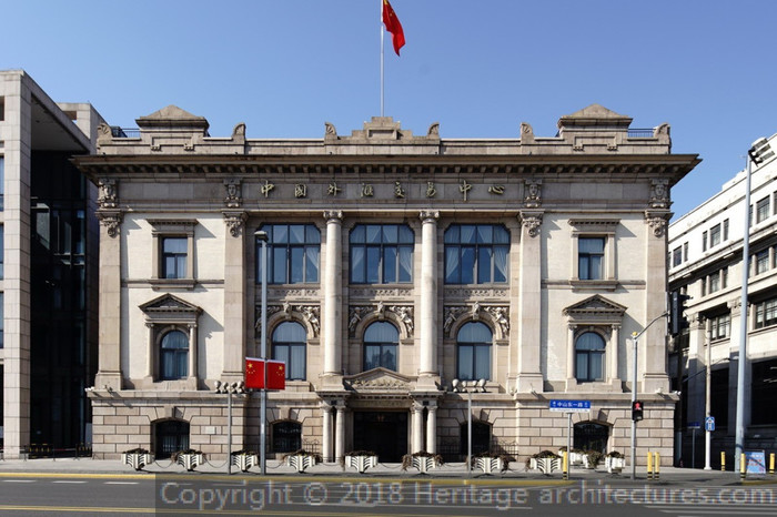 Несмотря на то, что здание выполнено в европейском нео-классическом стиле, а для облицовки вестибюля использовался итальянский мрамор, китайские мотивы в дизайне здания все же прослеживаются. Например, восьмиугольное основание купола (цифра 8 в китайской культуре считается счастливой); позолоченные львы на входе, которые позже были заменены на бронзовые (оригинальные львы переехали в музей Шанхая).