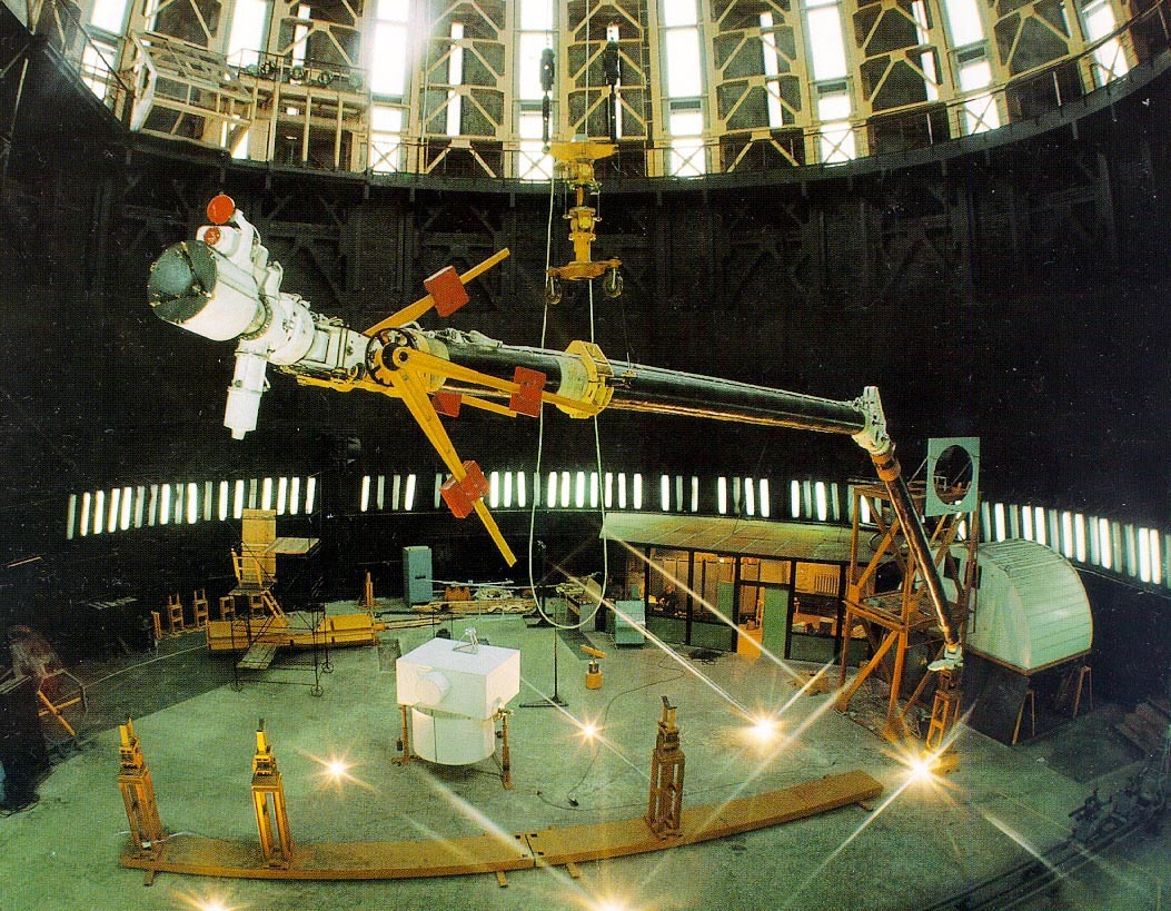 Комплекс зданий в плане имеет форму креста, немного искривленного в западной части. Доминантой является 77-метровая башня в виде "бетонного тюльпана", расположенная на возвышенности в южной части и обращенная к двум проспектам. Здесь располагается огромная лаборатория для испытания космической техники (там находился манипулятор "Бурана"). Вместе с антенной, достроенной в 1990-х годах, высота здания составляет почти 105 метров.