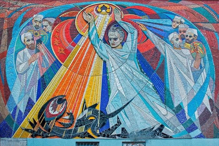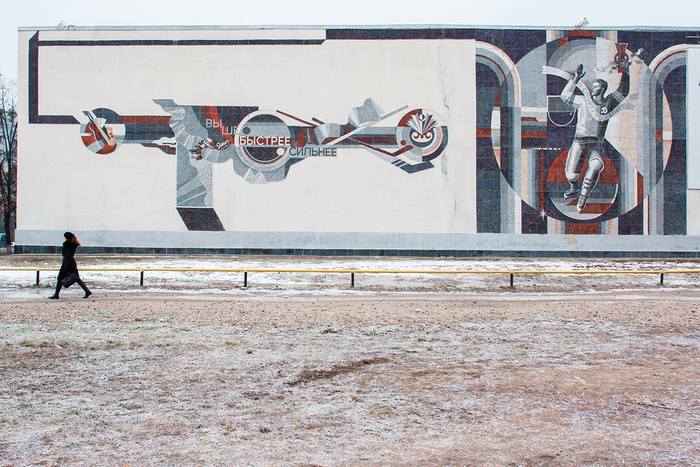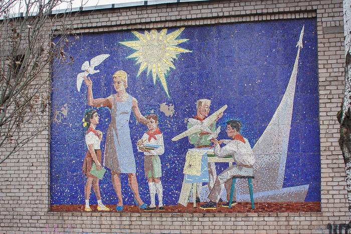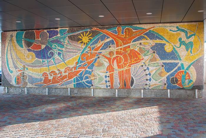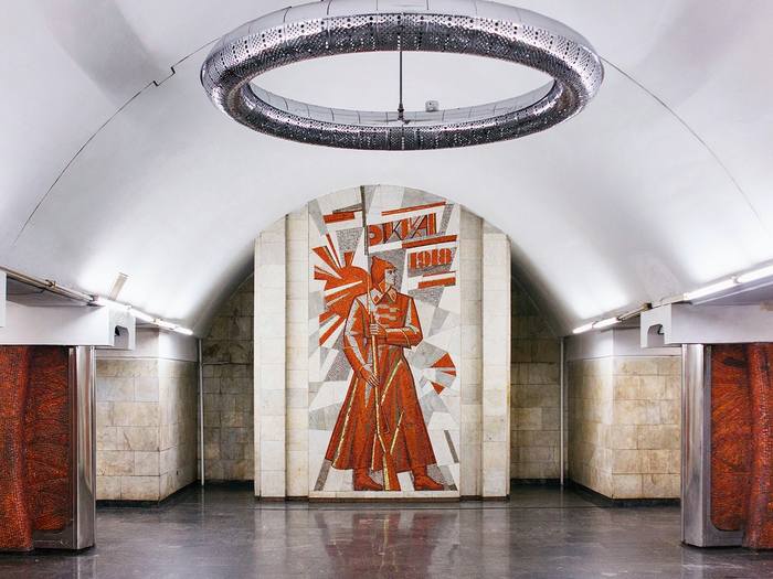 Киев, станция метро «Дворец „Украина“» (сейчас работа закрыта белой панелью)