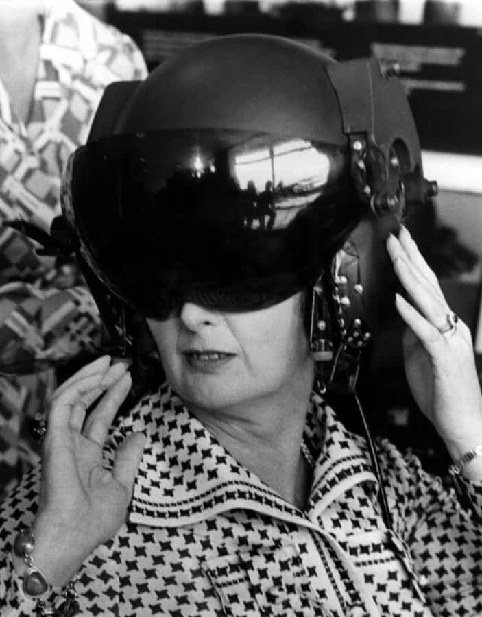 6 Andreykk Серия Архивное фото... Архивное фото... 10 месяцев назад Маргарет Тэтчер тестирует новый шлем с системой проекции изображения. 1978г. Фотография Маргарет Тэтчер Шлем Ещё 0