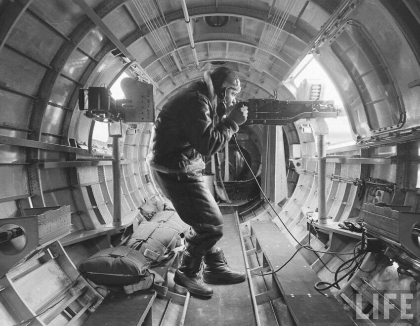 Стрелок хвостовой точки тяжёлого немецкого бомбардировщика Не-177.