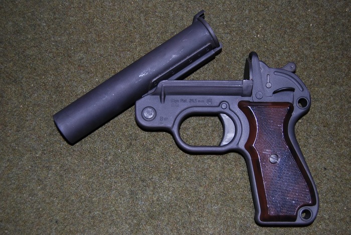 Используемые нами сигнальные пистолеты стреляют двумя видами боеприпасов - светошумовыми(flashbang) и сигнальными(flare). Для того, чтобы напугать медведя используются светошумовые патроны, пролетая некоторое расстояние они взрываются, образуя яркую вспышку и громкий хлопок. Флаер - ракета яркого красного цвета, главное предназначение которой - подать сигнал окружающим на большое расстояние. Однако, если светошумовые патроны у вас закончились, для отпугивания медведя сгодится и она. В большинстве случаев, встречи с медведями заканчиваются их бегством после отпугивания сигнальным пистолетом. здесь важно помнить 2 момента. Во-первых, выстрелив единожды, продолжайте стрелять, даже если медведь начал убегать уже после первого выстрела. Это важно для того, чтобы отбежав немного мишка не остановился с мыслями "а не так уж и страшно было" и не захотел к вам вернуться. Во-вторых, помните куда вы стреляете. Если вы выстрелите и попадете слишком далеко, за медведя, испугавшись он побежит не от вас, а на вас. Прецеденты были и не раз. Поэтому старайтесь попасть между собой и медведем. Учитывайте так же то, что патроны из сигнального пистолета рикошетят от земли(это видно на видео ниже). Дистанция до медведя, ближе которой необходимо начинать применять сигнальный пистолет - 150 метров. За то время, пока медведь(в нашем случае снегоход, имитирующий медведя) пробежал ее, я успел сделать 4 выстрела, а ответственный за ружье - один.