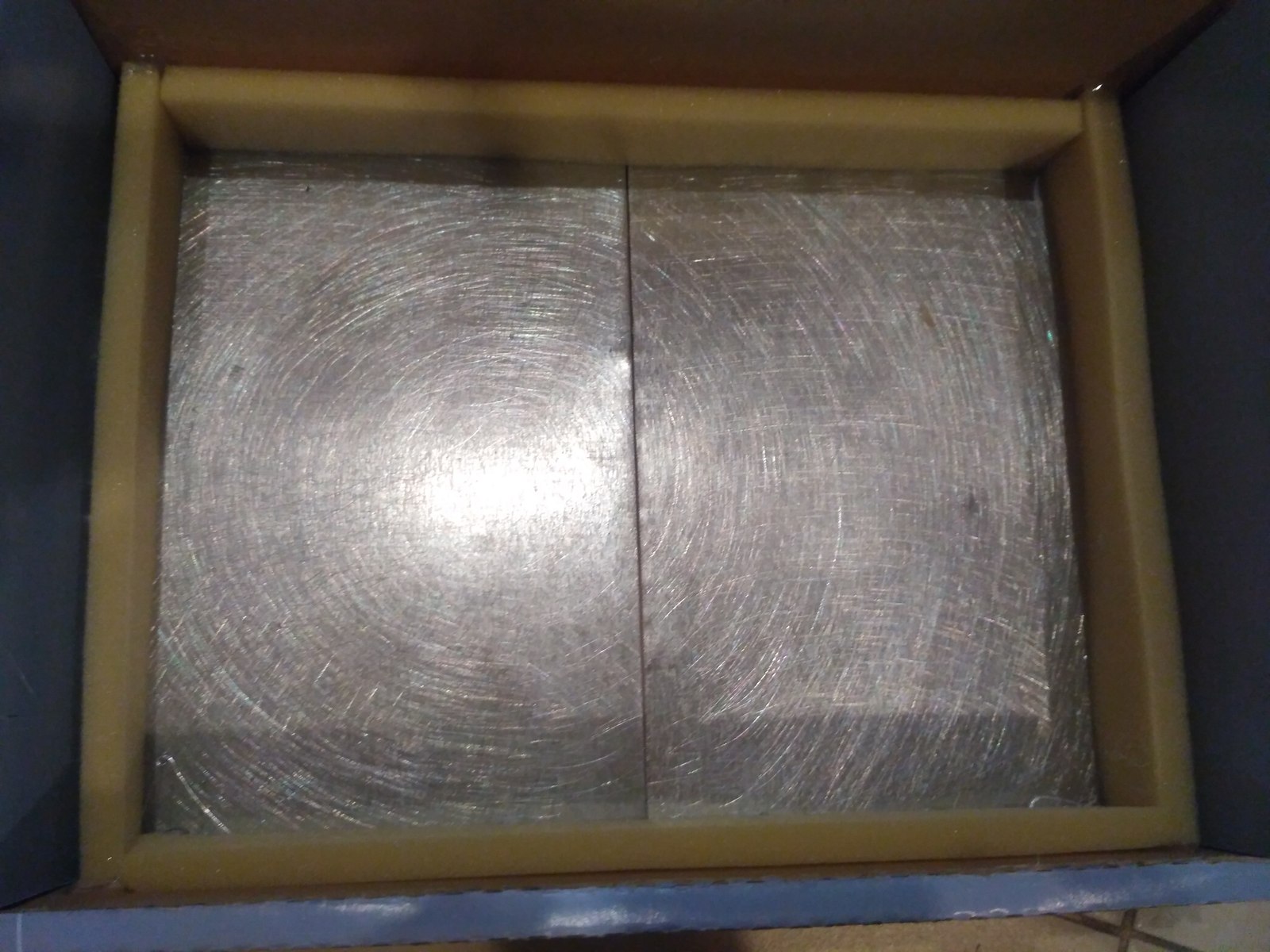 6. Укладываем обработанные листы в коробку и сверху по периметру заливаем термоклеем.