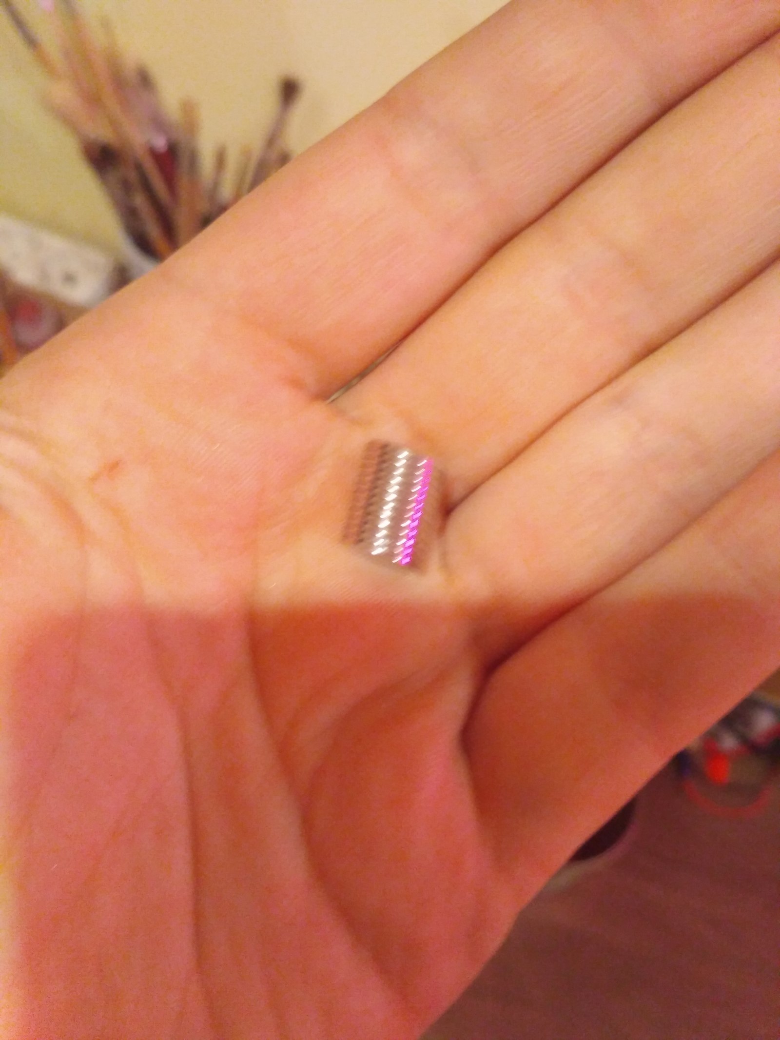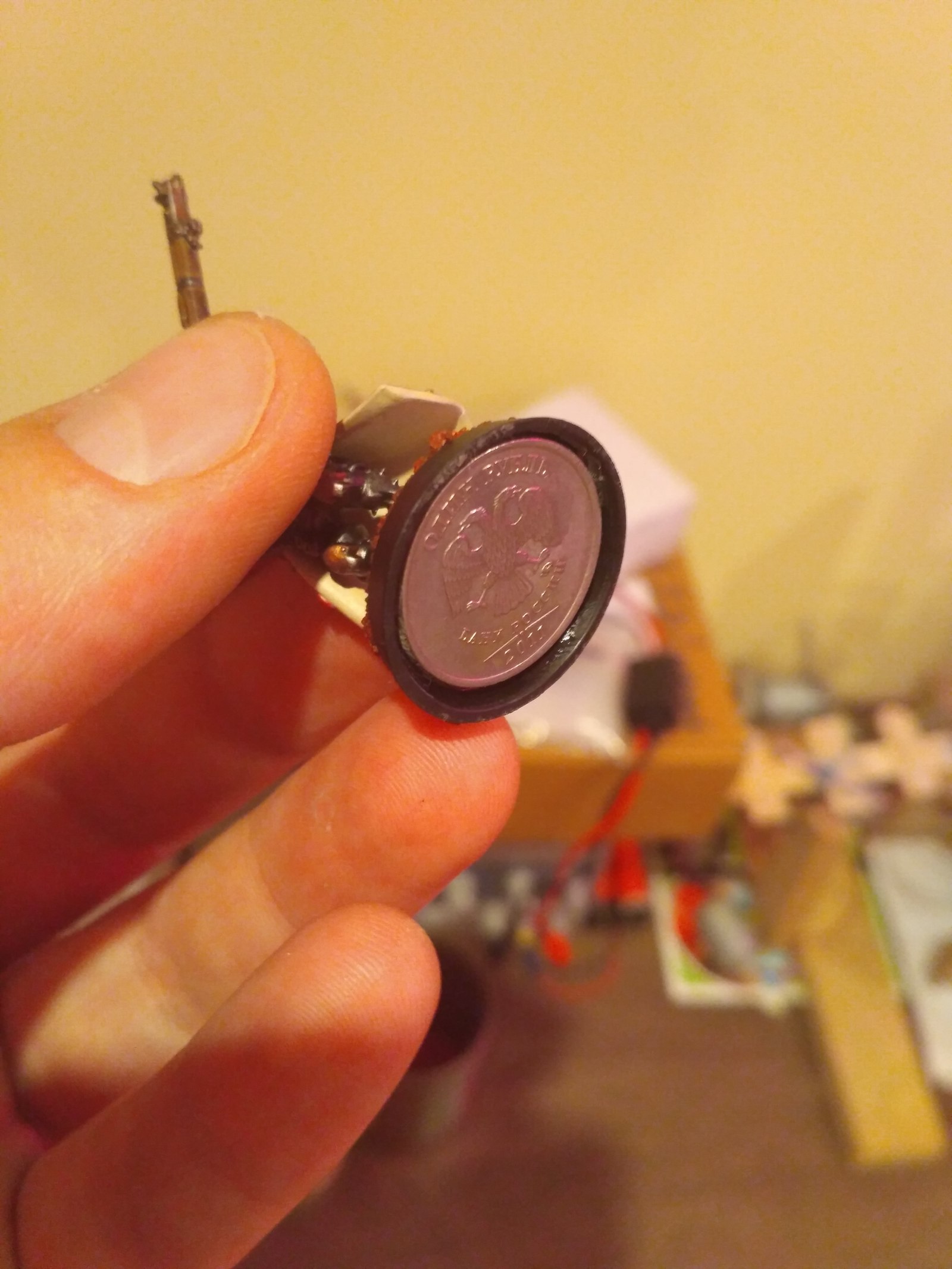 Затем неодимовый магнит ( у меня размеры магнита 10мм на 1мм ) к миниатюре и в транспорт.