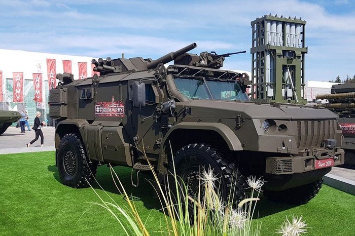 Среди бронемашин, которые представлены на форуме, большой интерес у СМИ получил новый бронеавтомобиль, созданный в рамках ОКР Атлет и получивший название АМН-2. Машина является многоцелевой, однако основным её предназначением является транспортировка грузов и личного состава. Корпус машины стальной и обладает улучшенным уровнем бронирования по сравнению с предыдущими машинами серии Тигр. Баллистическая защита соответствует 2 уровню (патрон 7,62х25 мм пистолета ТТ или патрон 9х21 мм пистолета СР-1), противоминная защита позволяет выдерживать срабатывание взрывного устройства мощностью до 6 кг в тротиловом эквиваленте под V-образным днищем или колесом. Коробка передач механическая 5-ступенчатая или автоматическая 6-ступенчатая. На машину устанавливается двигатель ЯМЗ-534724 мощностью до 300 л.с., он способен разгонять АМН-2 до скорости 120 км/ч, запас хода составляет 1000 км.
