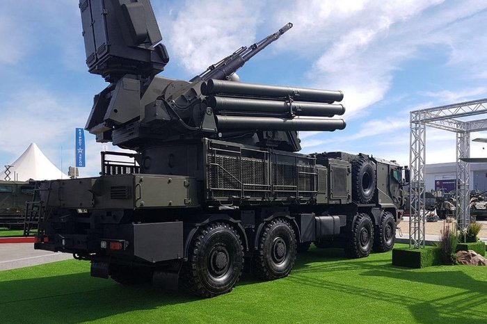 Впервые на форуме Армия-2019 широкой общественности демонстрируется зенитный ракетно-пушечный комплекс Панцирь-СМ. Новый комплекс предназначен для поражения воздушных целей на ближних и средних дистанциях, а также поражения легкобронированных целей на земле. В конструкции машины используется шасси бронеавтомобиля К-53958 Торнадо с колёсной формулой 8х8. Кабина бронированная от бронемашины Тайфун-К и имеет класс защиты Бр-5 (пуля 7,62х54 мм СВД). Устанавливается дизельный двигатель мощностью 450 л.с., который способен разогнать машину до 90 км/ч. Панцирь-СМ имеет новый прицельный комплекс, дальность поражения целей, летящих со скоростью 2000 м/с, составляет до 40 км, а максимальная высота поражения – 15 км. На вооружении комплекса имеются 12 дальнобойных ракет и 2 автоматические пушки 2A38М калибра 30мм.