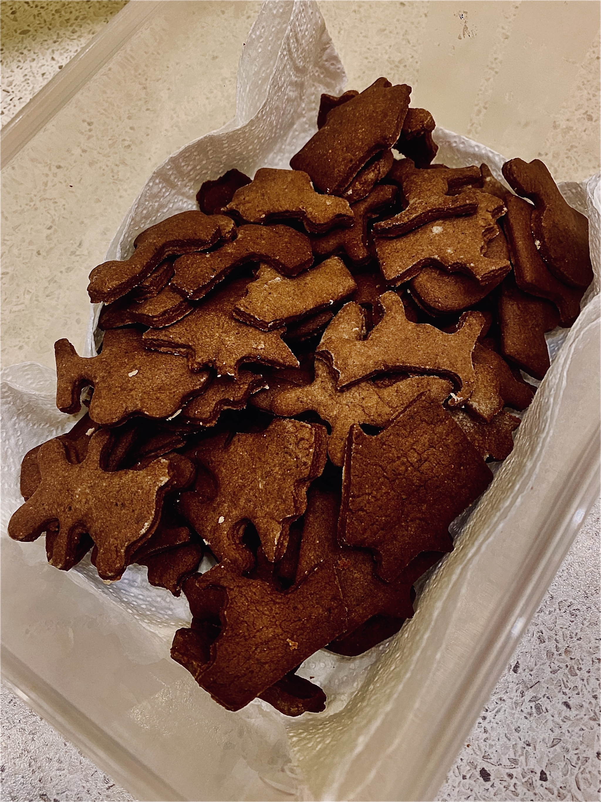 4. Достать тесто, разделить его на 2 части. Раскатать пласт толщиной 3-5 мм, с помощью форм вырезать печенье.