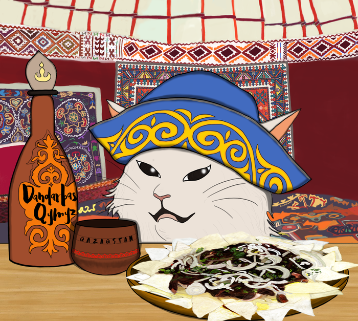 Скоро праздник Наурыз, поэтому решила нарисовать популярный мем в казахском стиле.