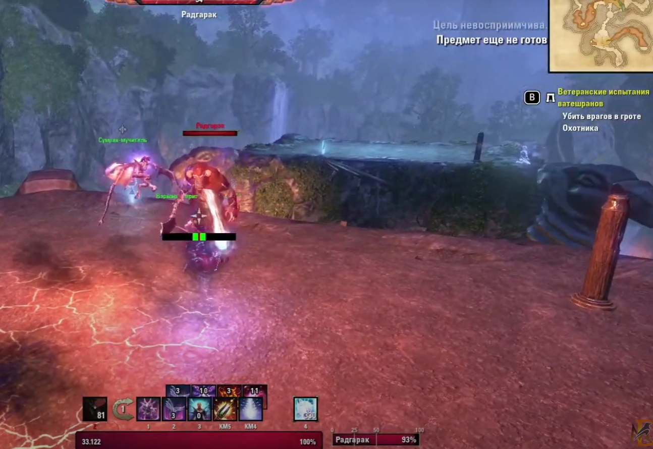 не помню :) Технически помню, что там в центре обрывок и по сторонам тоже выступы по скалам и везде зацепы для самострела и туда-сюда пердячить надо на фазах разных. А кого бьем никогда не смотрел :)