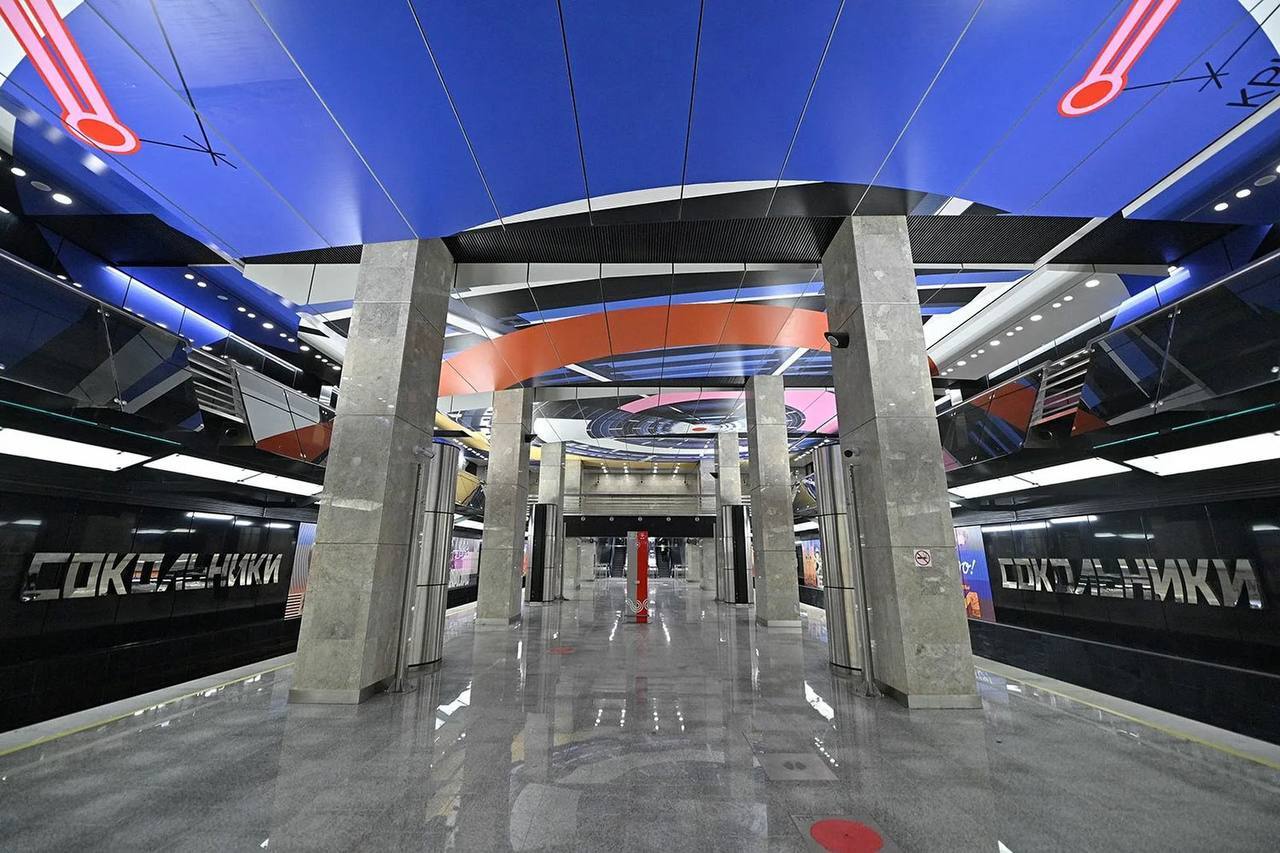 Станция Большой кольцевой линии «Сокольники», открытая в 2023 году, символизирует начало строительства Московского метрополитена. В 1935 году она стала первой вехой в реализации этого грандиозного проекта. Новое сооружение увековечивает труд метростроителей. Оформление зала выполнено в стиле 30-х годов прошлого века. На стенах размещены фрагменты старых плакатов и фотографии строителей метро, полных энтузиазма и оптимизма. Потолок украшен светоотражающими панелями с рисунками в духе Казимира Малевича, Владимира Татлина и других художников-авангардистов и конструктивистов.