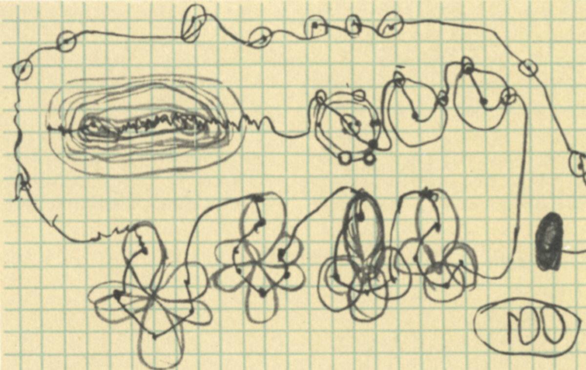 Некоторые больные никогда не рисовали обычных детских рисунков. У них всегда была своеобразная тематика: планы шоссейных дорог, схема городов, пути на Марс, остров Пасхи, вымышленный океан, лампочки, электросхемы, нервные окончания, гланды, микробы.