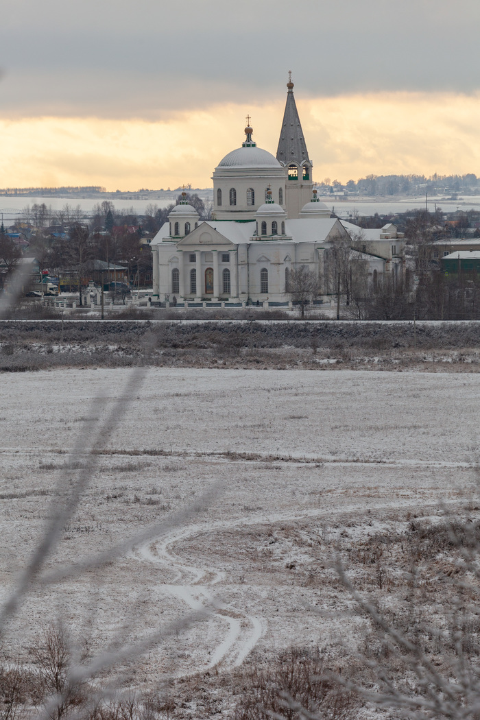 Потом поехал в само Выездное и попал как раз на закат. Солнце освещало купола и вид оттуда был потрясающий.