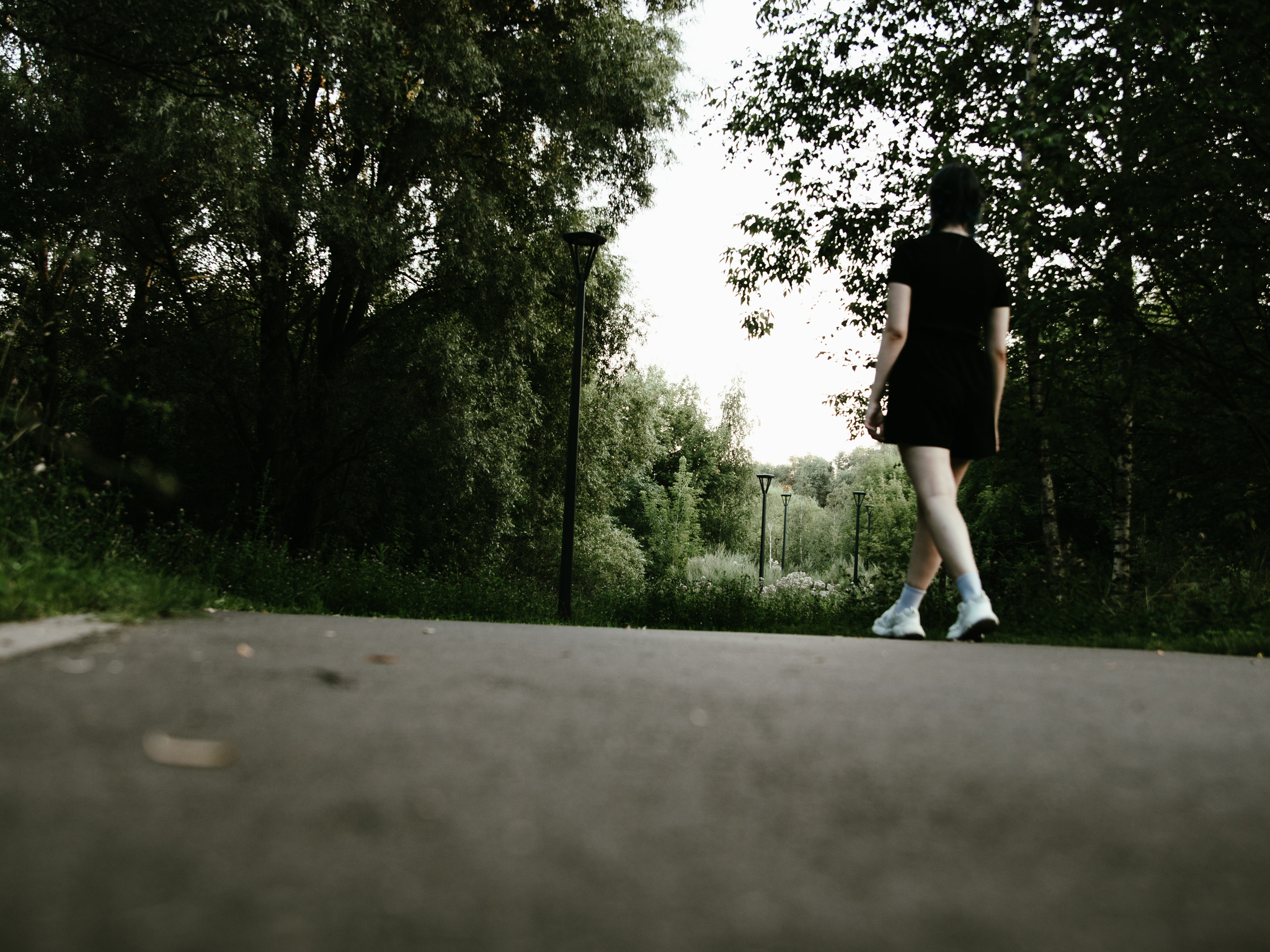 Добрый день! Пробовал фотографировать снизу, с фокусом на парк в дали, чтоб получить эффект размытия девушки, эксперименты. Единственное не получилось сделать горизонт ровным. Фото без обработки, и с обработкой.
