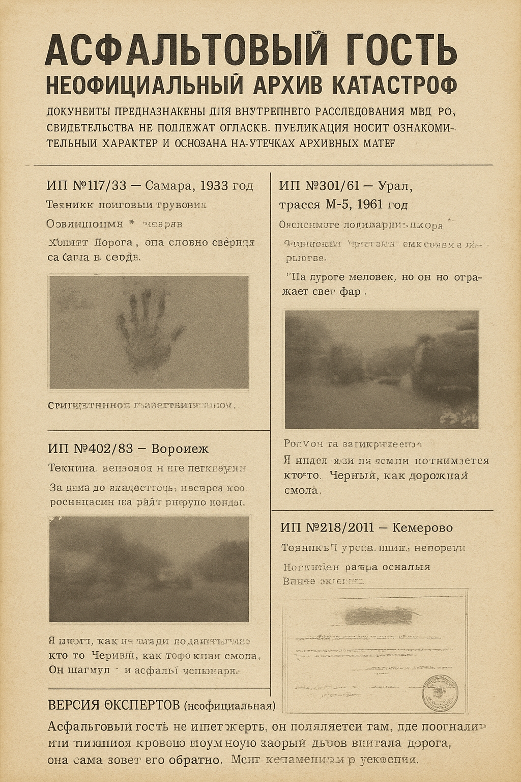 Асфальтовый гость остаётся неопознанным феноменом. Все случаи зафиксированы на трассах с историей массовых аварий.