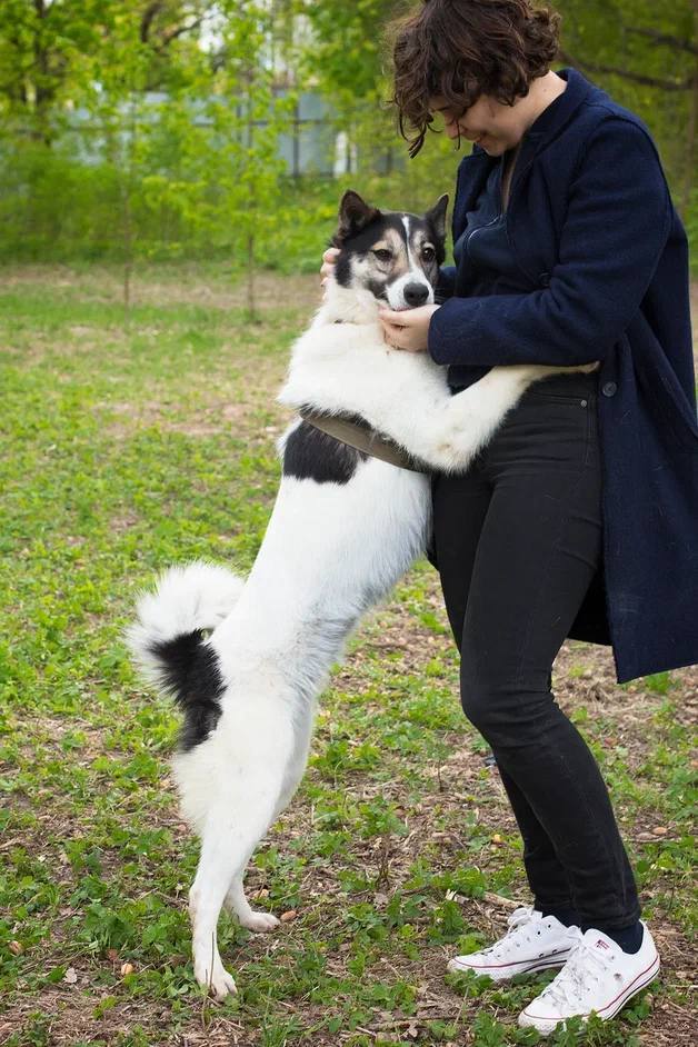 Очень открытая, много играет с друзьями по выгулу. Контактна и дружелюбна. Хорошо реагирует на детей, приветственно радуется всем от мала до велика.