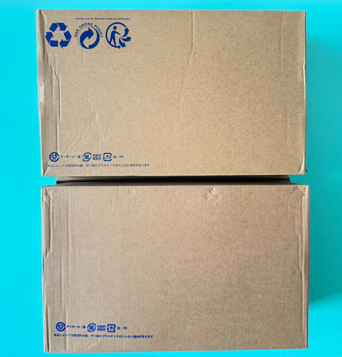 Если поставить коробки на бок, то видно что оригинальная коробка меньше в размерах.