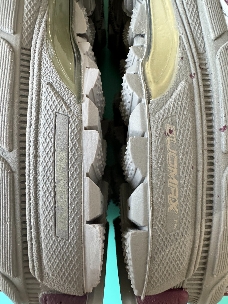 Теперь о различиях на подошве. Посмотрите на вставки по центру подошвы. На оригинале она выполнена будто бы из желе, а вот в подделке будто из пластика.