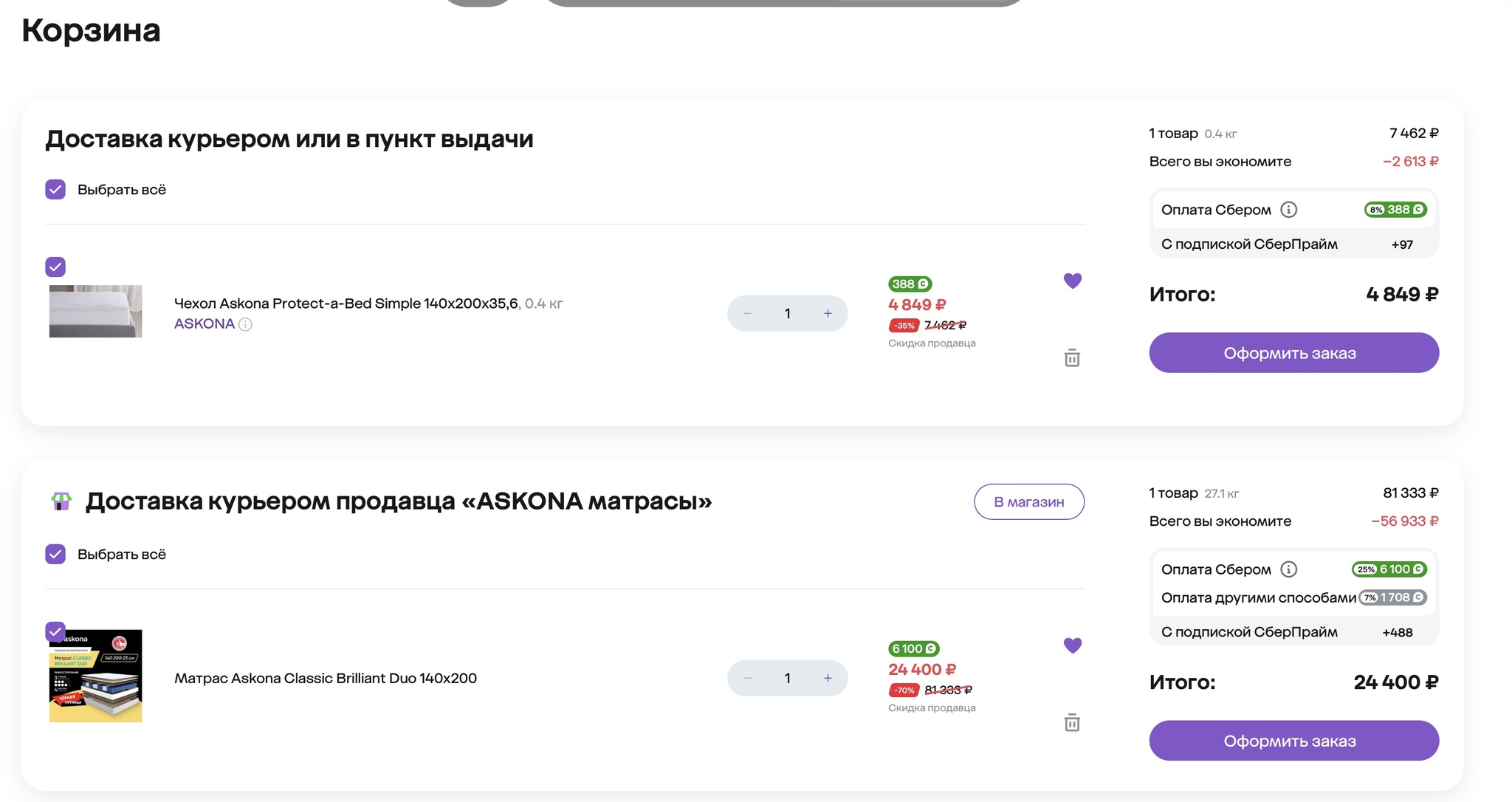 Поддержка аскона твердит "мы не консультируем о покупке наших изделий на сторонних площадках, ничем помочь не можем, просите постфактум объединить чек". Мегамаркет говорит "объединение разных заказов от разных продавцов разными способами доставки невозможно, чек выдается при оплате и оформлении заказа"
