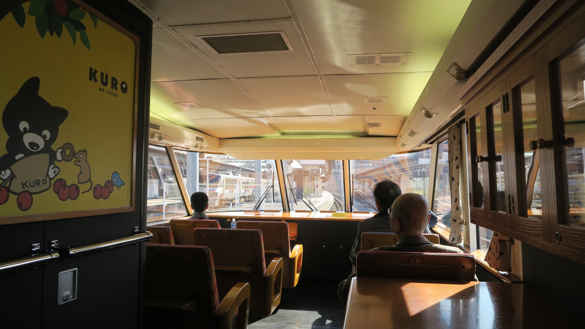 Важная информация для тех, кто хочет прокатиться на данном поезде: места необходимо бронировать заранее через стойку информации JR. Пока изучал сайт, заметил, что все места в вагоне 普通車指定席 - что означает "зарезервированные места".