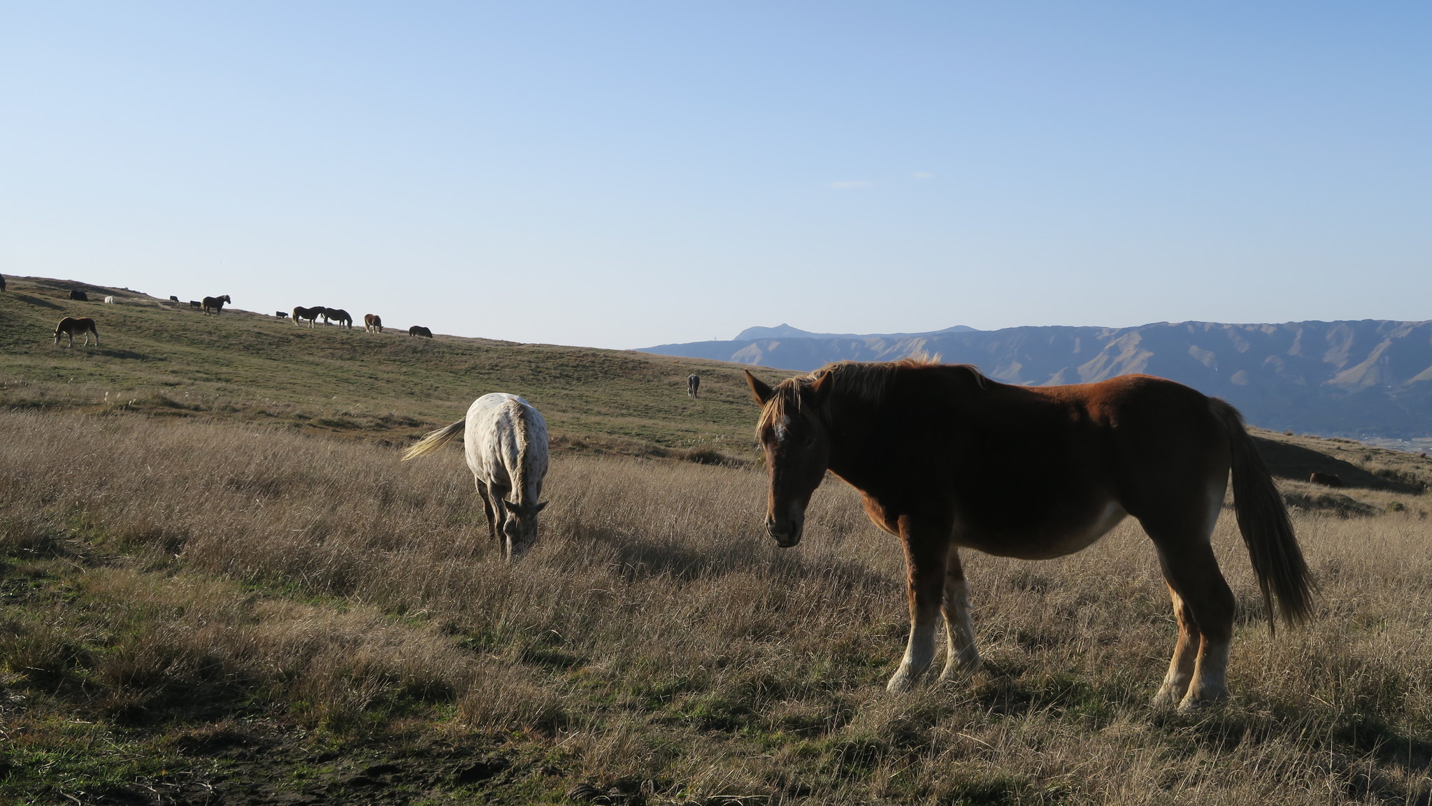 Пока поднимался в гору, встречал коров и лошадей, а некоторые японцы из машин поддерживали меня словами - "гамбатте" ("постарайся", "удачи").