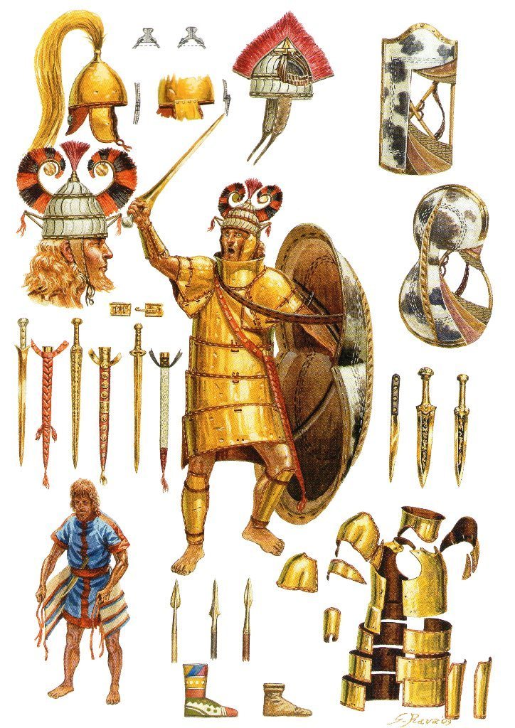 -гоплиты же и просто - воены имели на вооружении облегченные варианты щитов: деревянные или же сплетенное из ивовых прутьев основание обтягивалось невыдубленной буйловой кожей.Щит получался лёгким и оч прочным.Особенно если кожи вымачивали в насыщенном солевом растворе.От такого отскакивали копья даже со стальным наконечником.Не говоря уже про бронзовые.